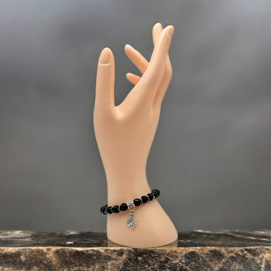 Black Tourmaline Gemstone Silver Charm Stretch Bracelet