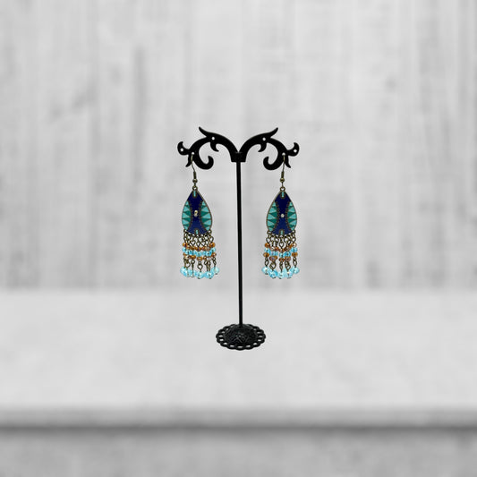 Black Larvikite Gemstone Antique Silver Silver-plated Drop Earrings