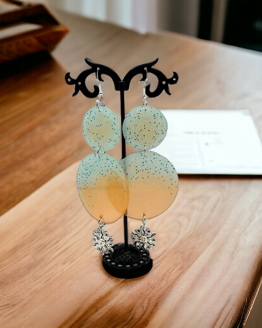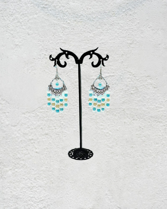 Bronze Filigree Focal Glass Bead Crystals Dangle Earrings
