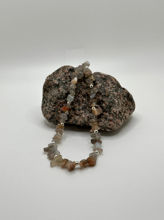 Gray Moonstone Gemstone Silver-plated Brass 18" Necklace