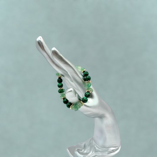 Green Malachite Gemstones and Green Aventurine Chips Stretch Bracelet