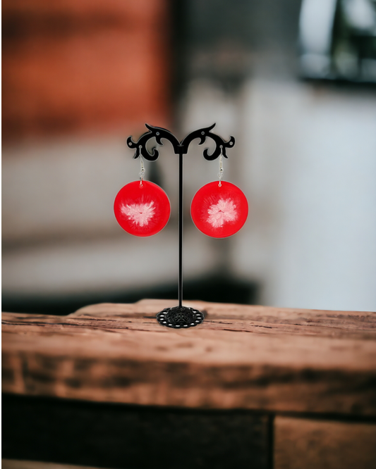 Large Fan Earrings with an Aqua and Light Purple Swirl Design