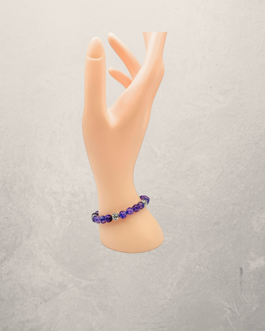 Purple Dragon Veins Agate and Antique Silver Stretch Bracelet