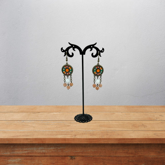 Rose Gold Czech Glass Tibetan Silver Sunburst Focal Dangle Earrings