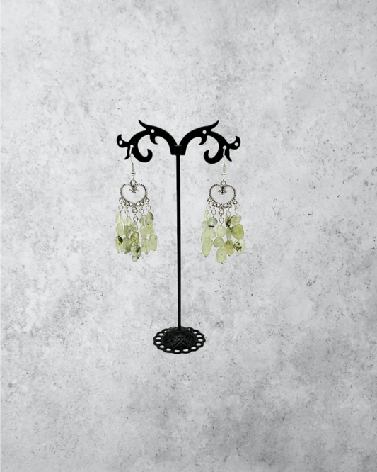 Prehnite Gemstone Nugget Antique Silver Heart Focal Drop Earrings