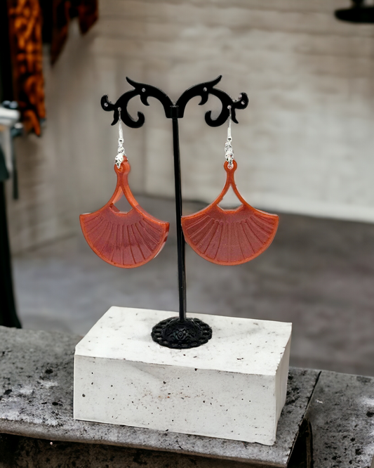 Large Fan Earrings with a Blue Green Purple Red Chameleon Effect