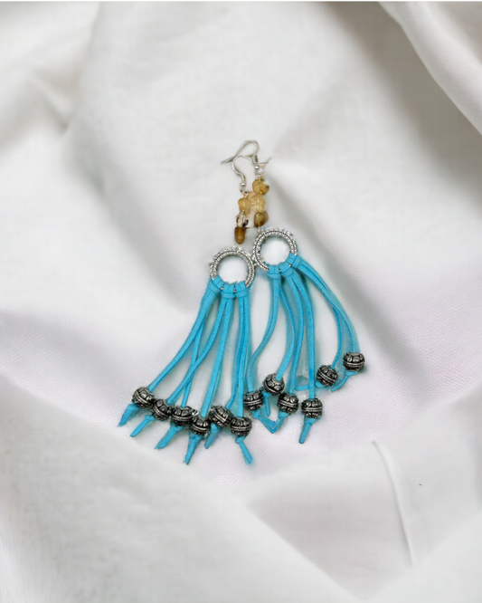 Magnesite and Turquoise Leather Fringe Dangle Earrings
