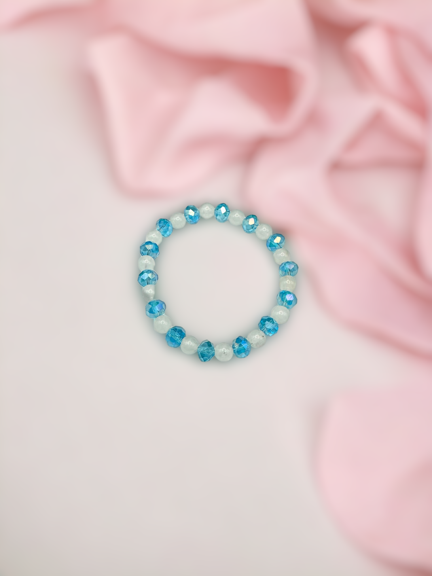 Snow Quartz Gemstones Lake Blue Glass Crystals Stretch Bracelet