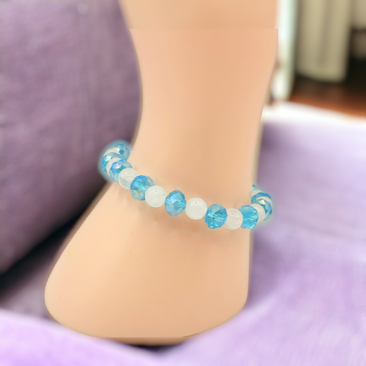 The Snow Quartz Gemstone Bracelet is a tranquil and sophisticated accessory designed to bring a sense of peace and serenity to your everyday life. This exquisite piece of jewelry combines smooth white gemstones with sparkling blue rondelle crystals, creating a captivating and harmonious bracelet. Whether you're attending a formal event or looking to elevate your casual ensemble, this bracelet is the perfect choice to add a touch of sophistication and tranquility to any outfit.