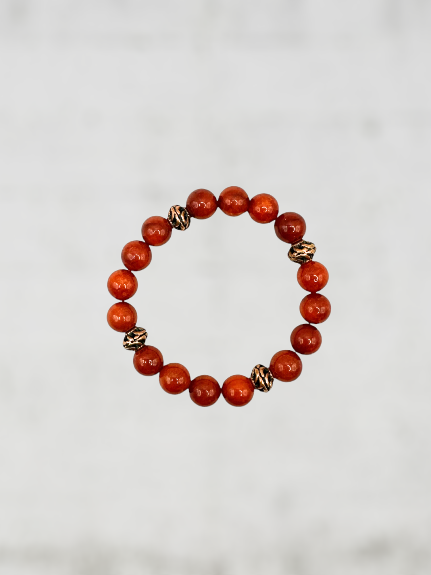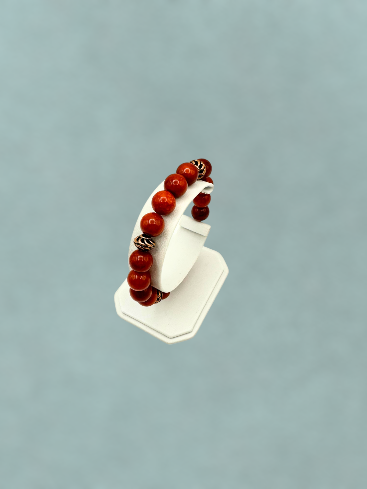 Design: The bracelet is adorned with vibrant 10mm red jade gemstones and luxurious copper spiral accent beads. This combination creates a sense of opulence and refined beauty.