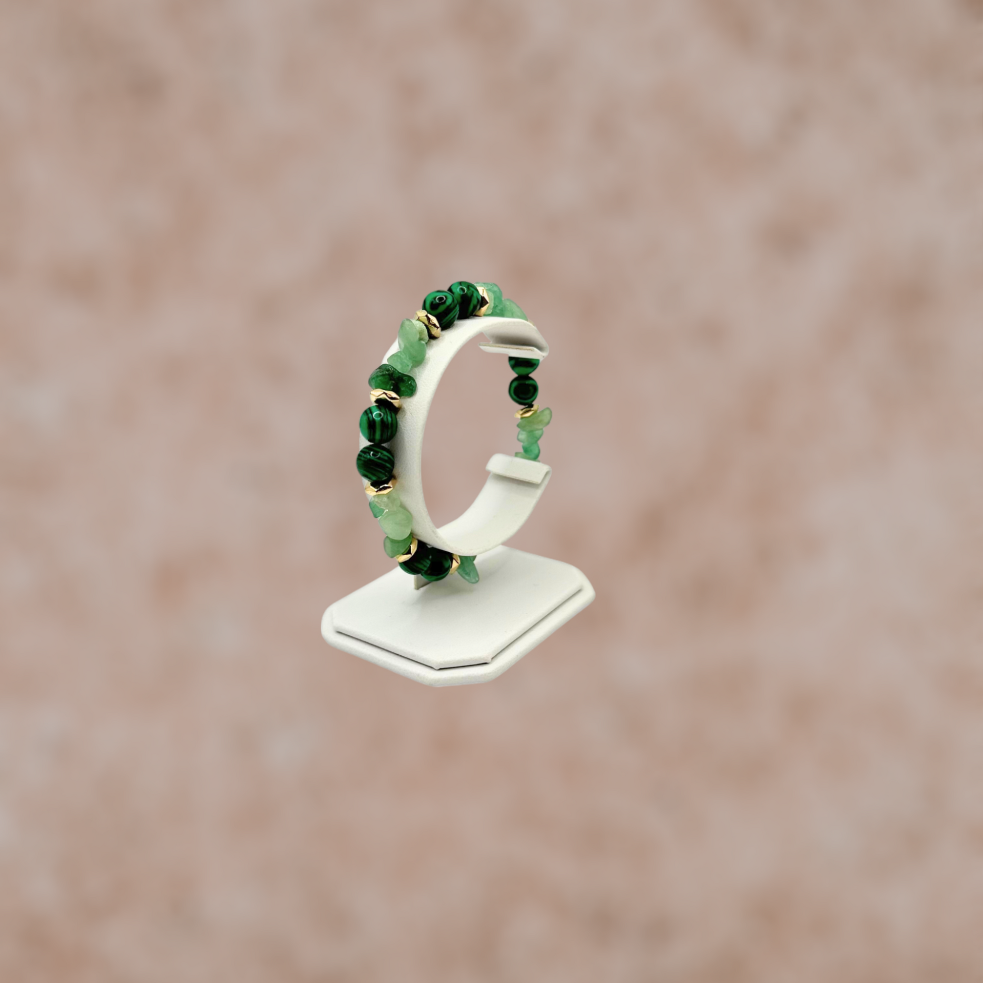 Embrace the beauty and healing properties of Green Malachite and Green Aventurine with this handmade stretch bracelet—a meaningful accessory that adds a touch of nature to your collection. Experience the positive energy and style it brings to your everyday attire.