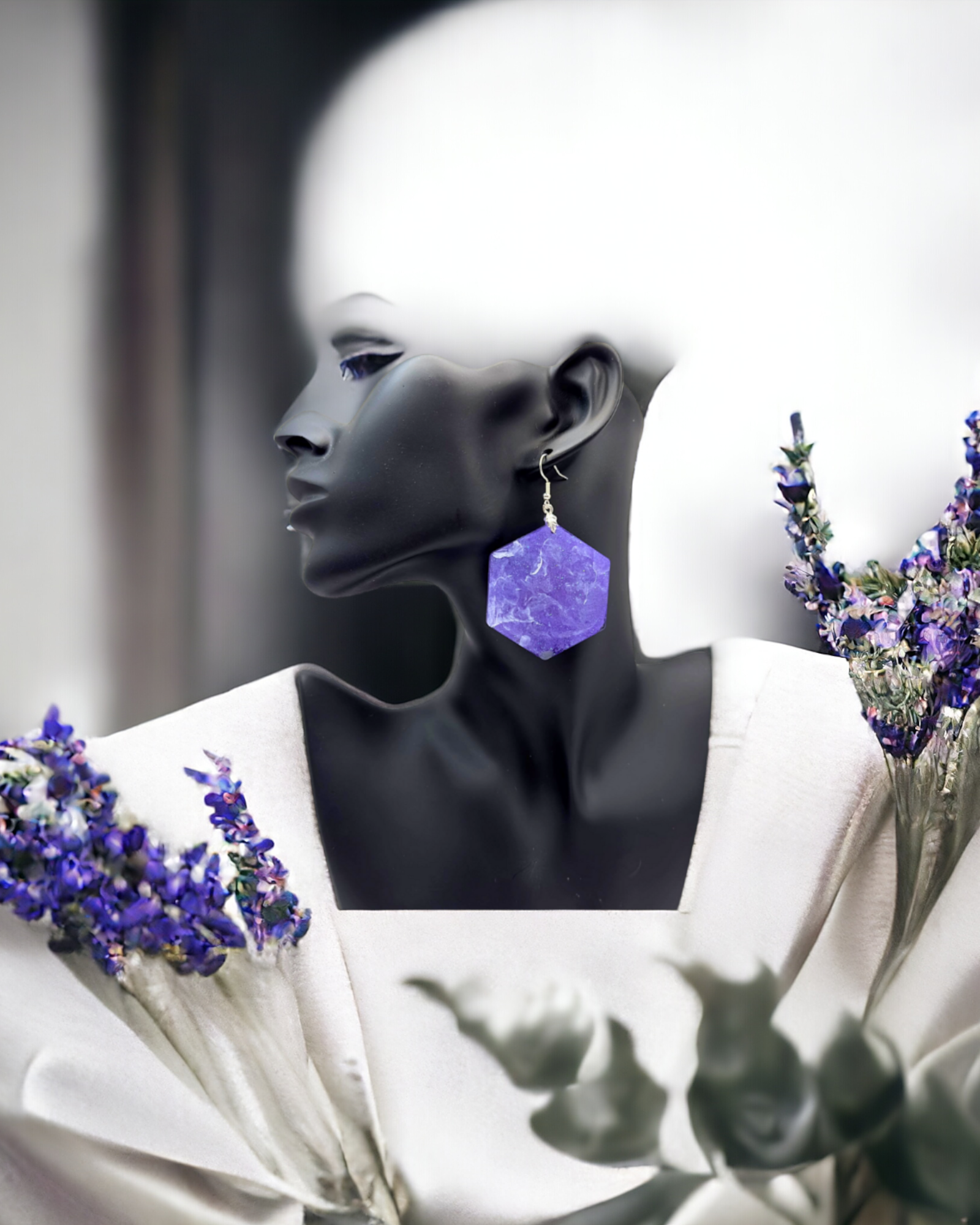 Add a touch of elegance and color to any outfit with our Handmade Purple Hexagon Earrings. Whether you're dressing up for a special occasion or adding flair to your everyday look, these earrings are sure to make a statement and receive compliments wherever you go. Embrace their uniqueness and beauty as they enhance your accessory collection.