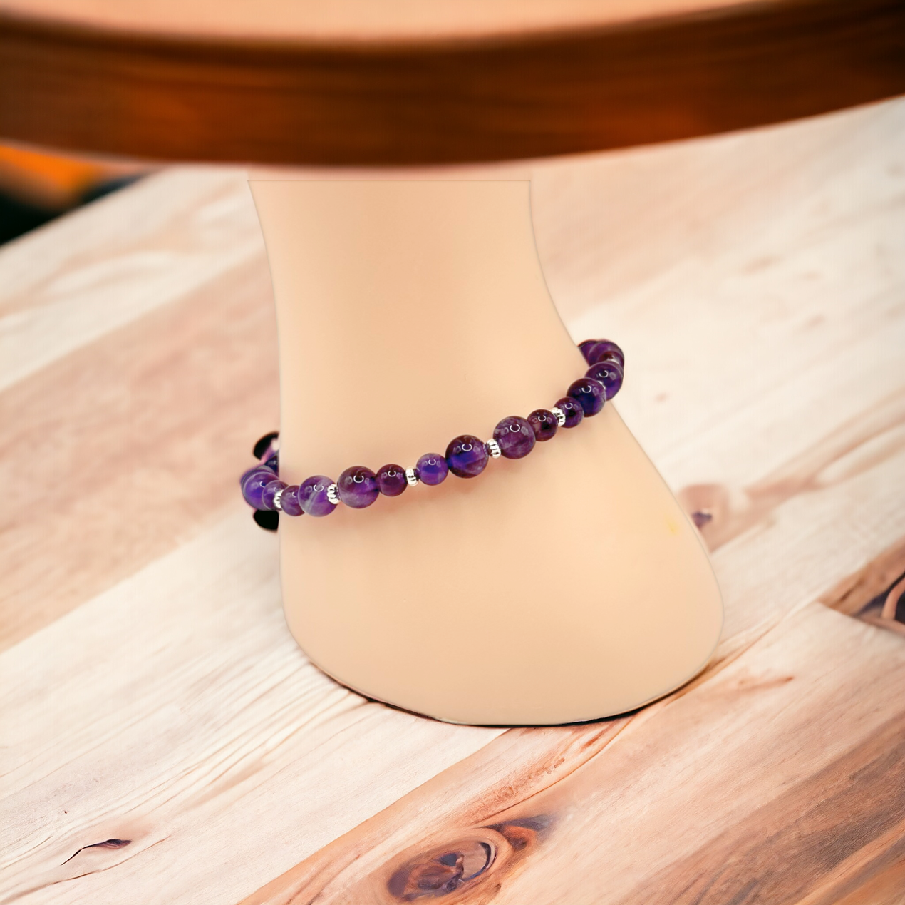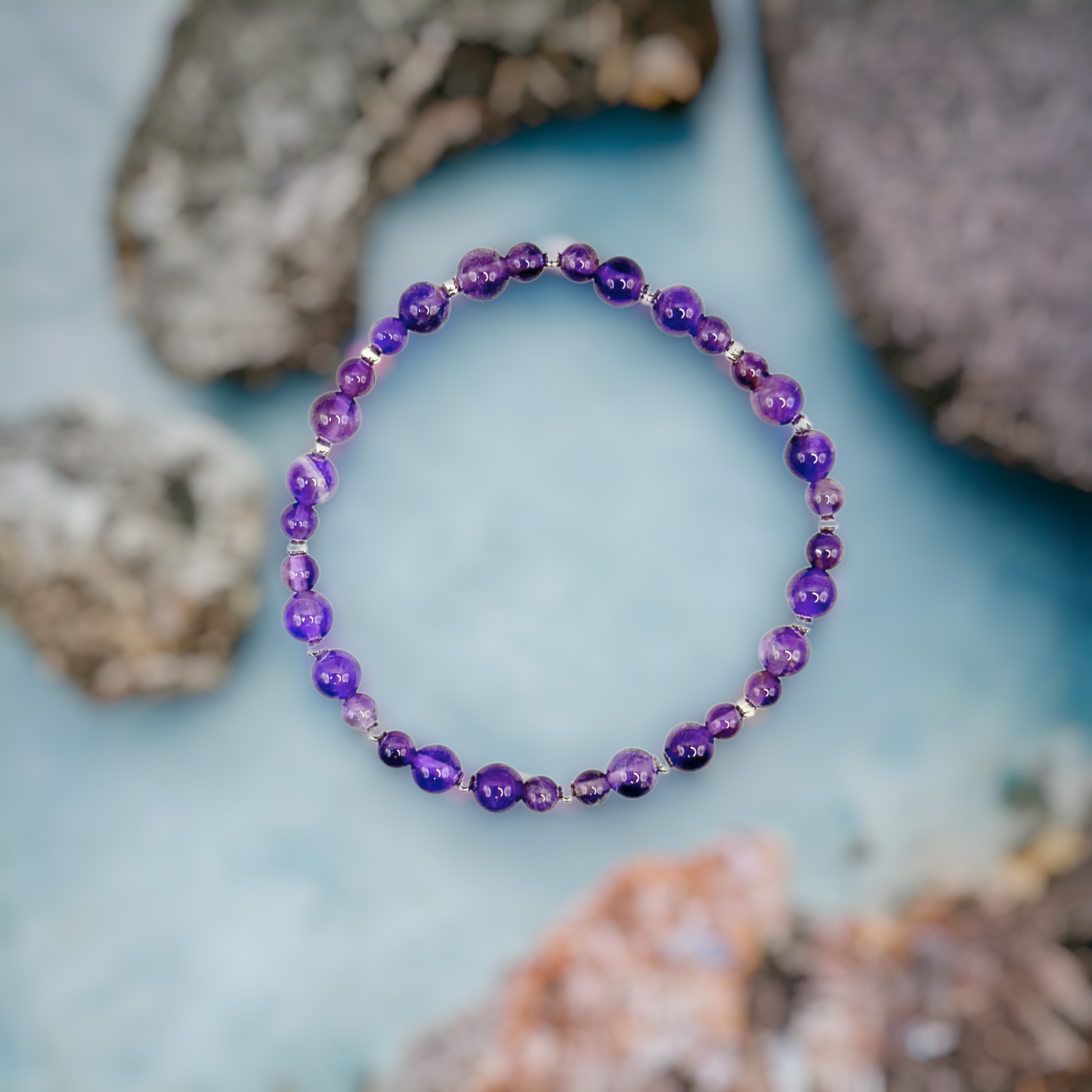 2. Gemstone Composition: The bracelet features a combination of 6mm and 4mm Amethyst gemstones, along with tiny silver-finished beads, creating a visually appealing and well-balanced design.