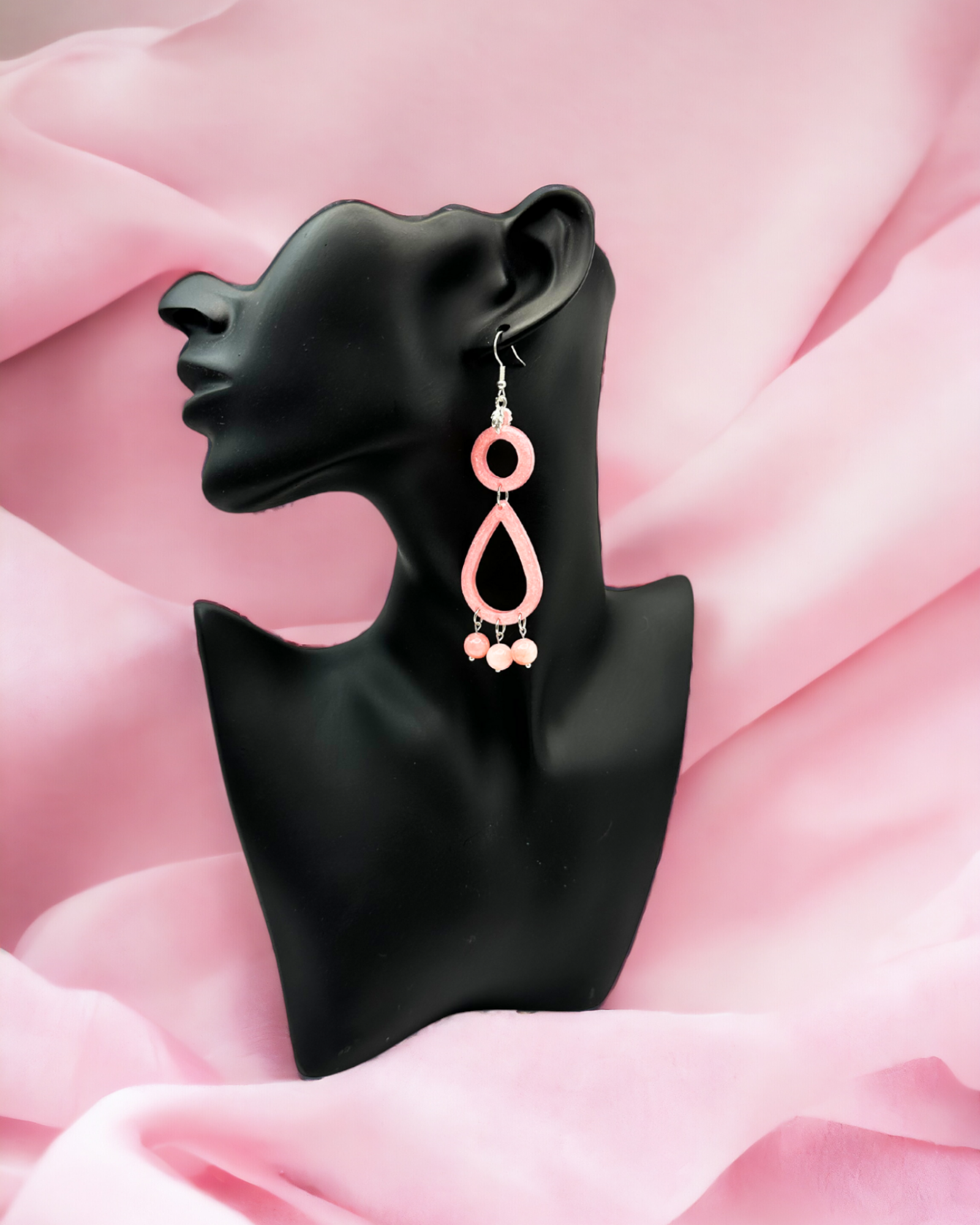 These Pink Teardrop with Jade Beads Drop Earrings are a must-have for any fashion-forward jewelry lover. Handmade with lightweight resin, these earrings feature beautiful pink jade gemstones and silver-plated fishhook ear wires. The teardrop shape adds a touch of elegance to any outfit, while the beads give a playful pop of color. These versatile earrings are perfect for everyday wear or special occasions. Get ready to receive compliments every time you wear them.