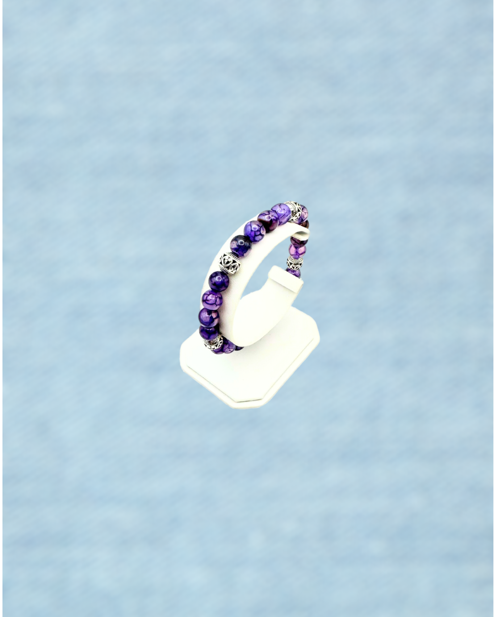 4. Gemstones: The bracelet includes 8mm purple dragon veins agate gemstones, known for their deep spiritual meaning and associations with strength, courage, and protection.