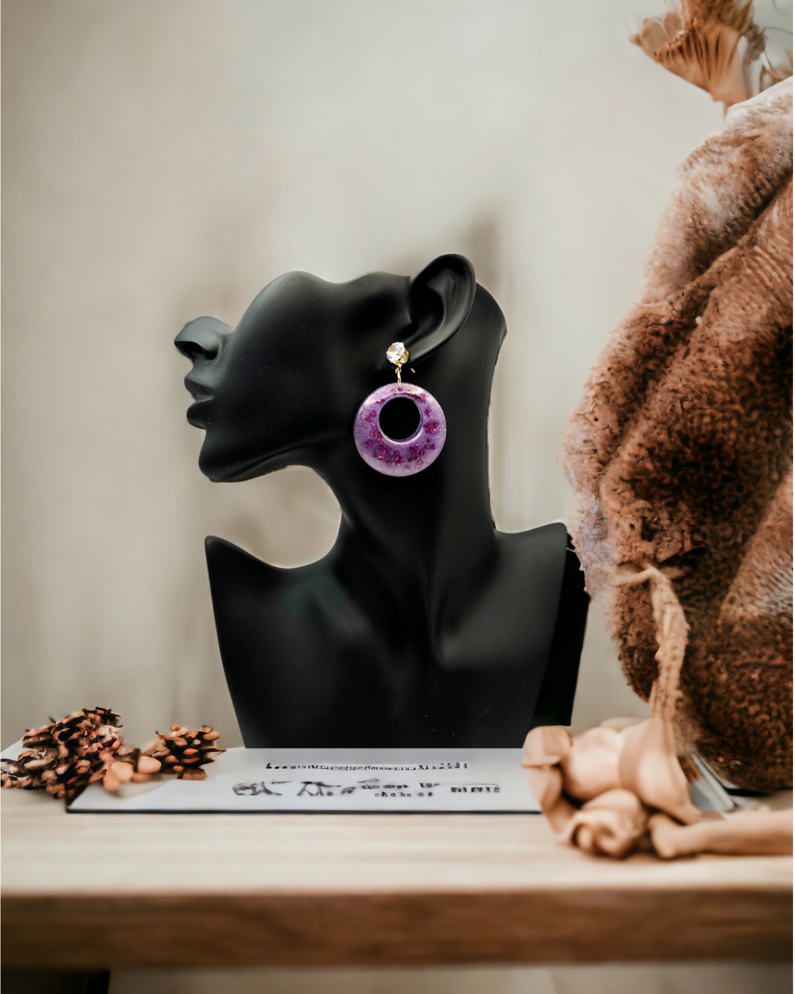 These stunning Round Purple Earrings with Purple Glass Cubic Zirconia Gold-Plated Posts are handmade with the utmost care and attention to detail. The lightweight resin is adorned with gorgeous purple glass chips, creating a unique and eye-catching design. The earrings are finished with Cubic Zirconia gold plated posts, adding a touch of elegance and sophistication to any outfit. These earrings are perfect for any occasion and are sure to become a staple in your jewelry collection.