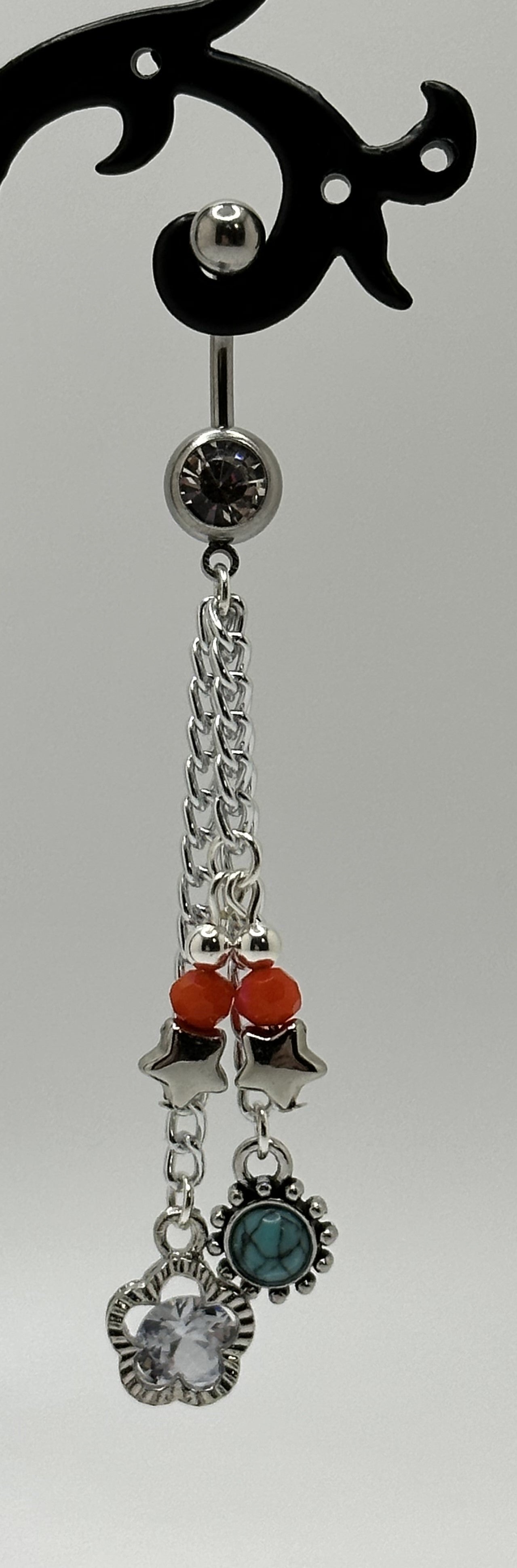 Eye-Catching Design: Featuring a beautiful Zircon stone and vibrant orange AB glass beads, this belly button ring exudes elegance and sophistication, adding a pop of color to your ensemble.